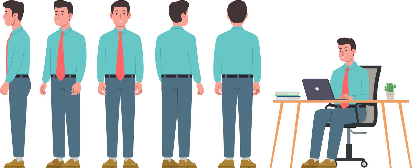 2D Casual Character Vector With 5 Poses Designed by Graphite Work, Free to download, best graphics material available for everyone.